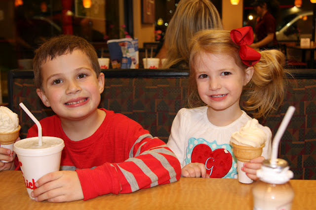 Garrett was a baby. We go eat at Chick fil a for dinner. It is never crowded and the kids have fun playing while Britt and I get a chance to visit. We finish the evening with ice cream. It is really the perfect date with kids.